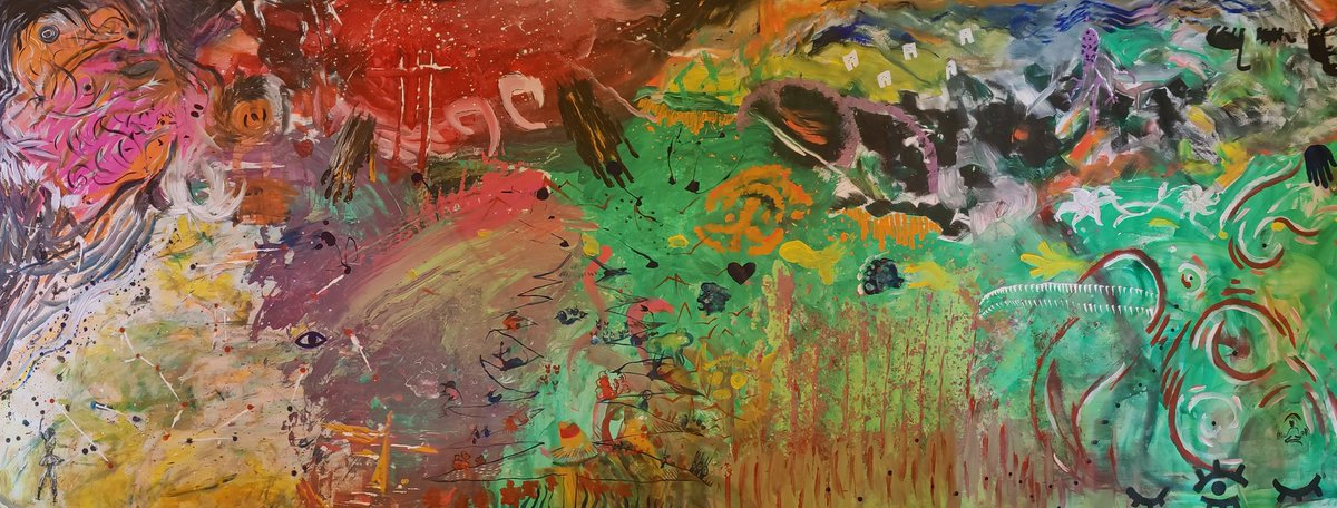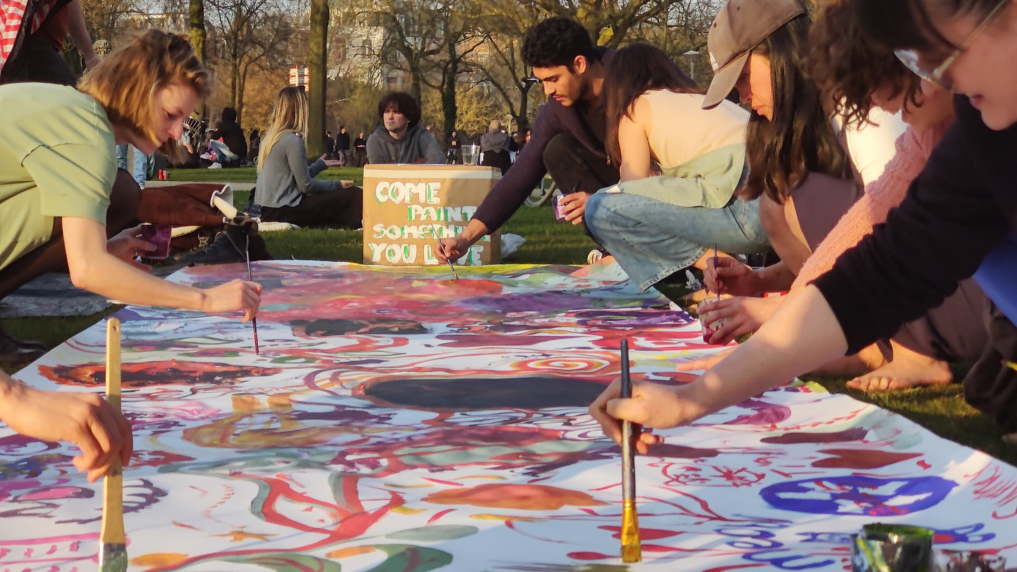 My intention is to provide a safe space for people to let go of preconceived ideas of what art is or should look like, what makes art “good” or “valuable”. A space where people can freely express their feelings and the surrounding environment via colour and motion. The end result - a vibe landscape of the inner and outer world, capturing the essence of the gathering!